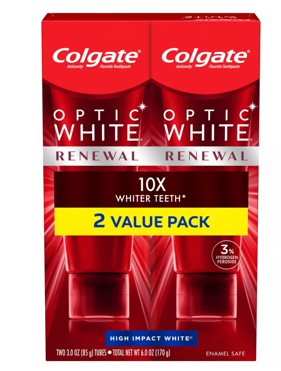 Colgate Optic White helps you keep your smile bright with two powerful whitening toothpastes. It's the same formula you know and trust, now in convenient twin-pack form. Get the power of Optic White to scrub away years of surface and deep stains, and help you keep your smile confident and radiant.